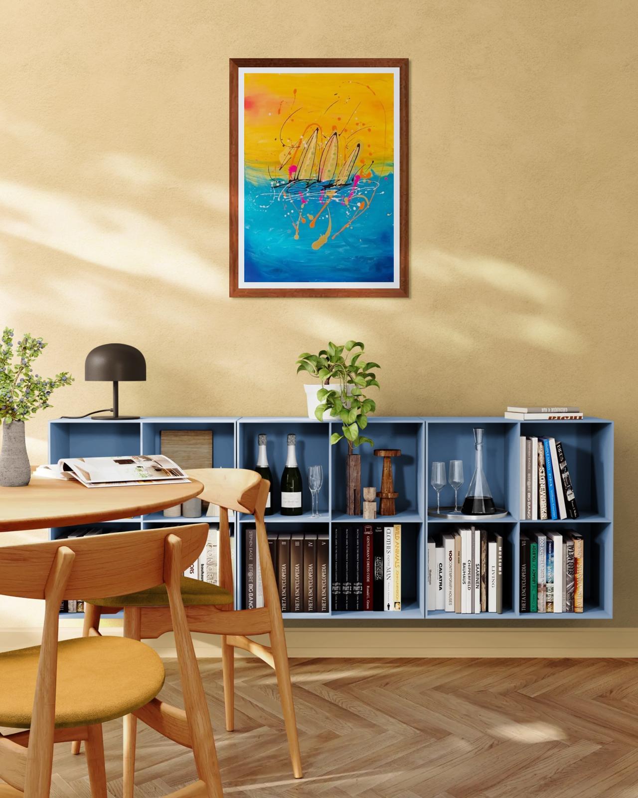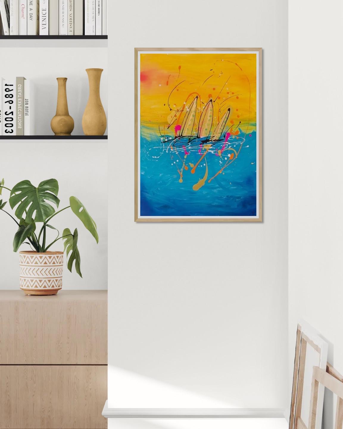 Peinture acrylique, feuilles d’or et vernis, sur toile de coton sur châssis de dimension 70 cm X 50 cm.