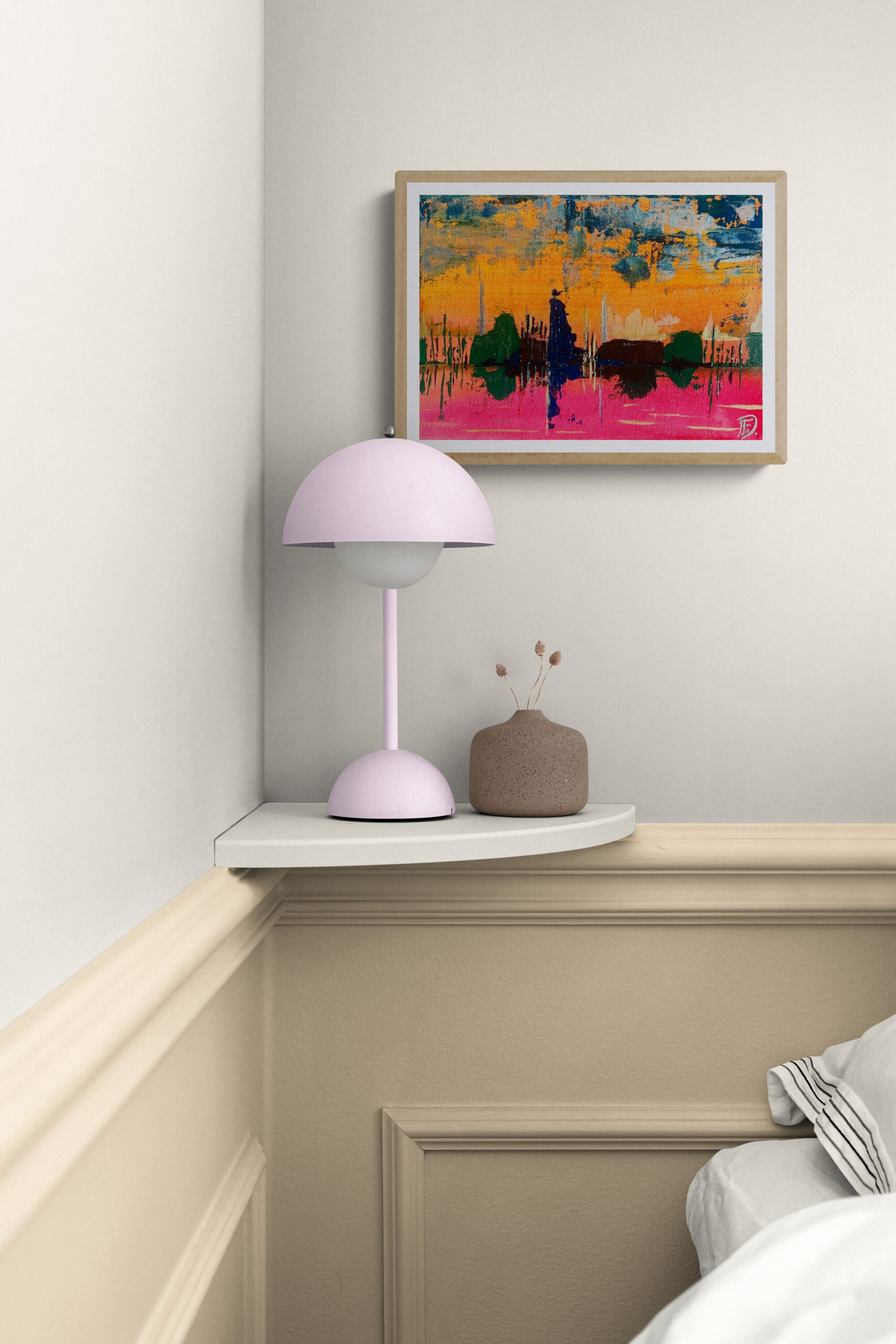 Peinture Acrylique, marqueurs et vernis sur carton entoilé de dimension 18 cm X 25 cm et d’épaisseur 2mm