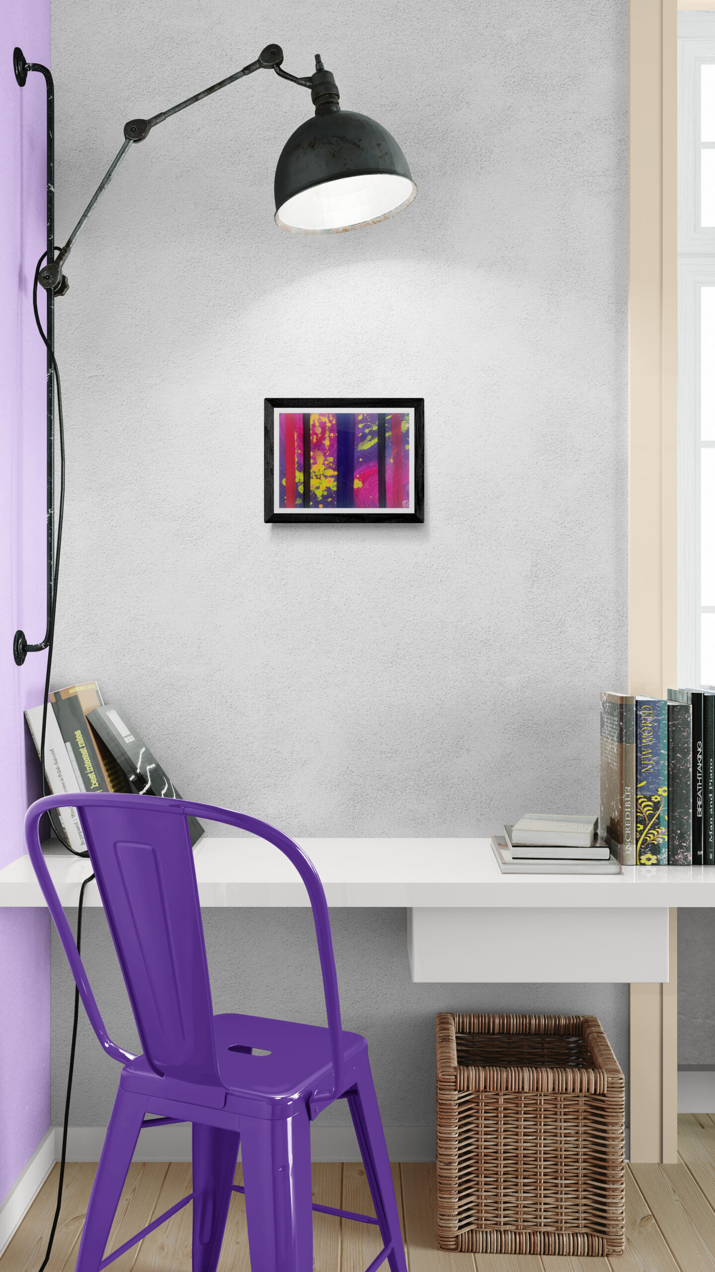 Peinture Acrylique, marqueurs et vernis sur carton entoilé de dimension 18 cm X 25 cm et d’épaisseur 2mm