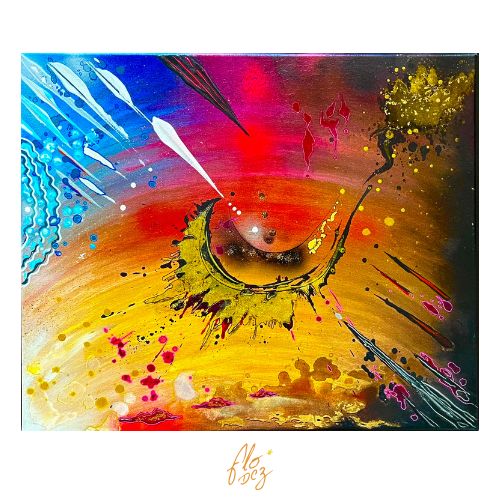 Peinture Acrylique, spray aérosol, marqueurs, vernis sur toile de coton